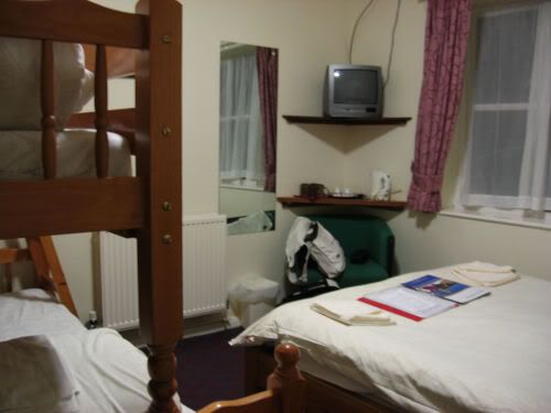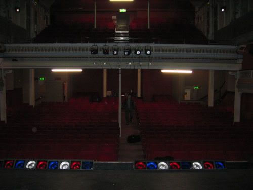 so we had our first show friday night.............driving from leeds to scarborough took almost 2 hours. and we left about an hour and a half after we were supposed to because Rick got stuck in accident traffic on the highway. THEREEFOREEE we got to scarborough late and had no time to relax or even eat, cuz we had to set up the stage and run the show with all the cuts......by the time we finished running it, we had about 20 minutes to eat. but there was no food in that place. so we had chocolate bars and crisps from the vending machine.......and a drink from the bar. BOOOOOOOoo...i dont think the cast got to eat either